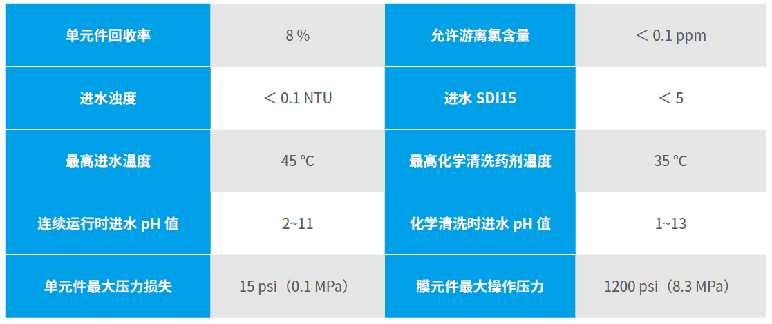 能耗低 改進優(yōu)化芳香族聚酰胺脫鹽層、開發(fā)更大比表面積,滿足在相同產(chǎn)水量要求時,降低運行壓力,從而節(jié)約能源。